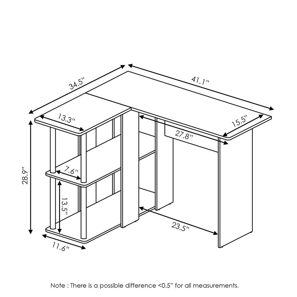 Furinno Abbott L-Shape Desk with Bookshelf is made with contemporary and exquisite workmanship, constructed with sturdy MDF material. The desk comes with multiple color, Espresso and French Oak Grey for customization. The L-Shape design allows for space saving with a larger desk, designed to maximize any corner of an office or home space. There are 2 levels of open shelves available for storing and organizing personal items. The assembly process is made easy with the provided parts and hardware. Assembly instructions are revised repeatedly to ensure that it is clear to read, simple to understand and safe to work. Care instruction: wipe clean with clean damped cloth and avoid using harsh chemical to prevent damage to the furniture. All the pictures are for illustration purposes only; decor items are not included in the set.