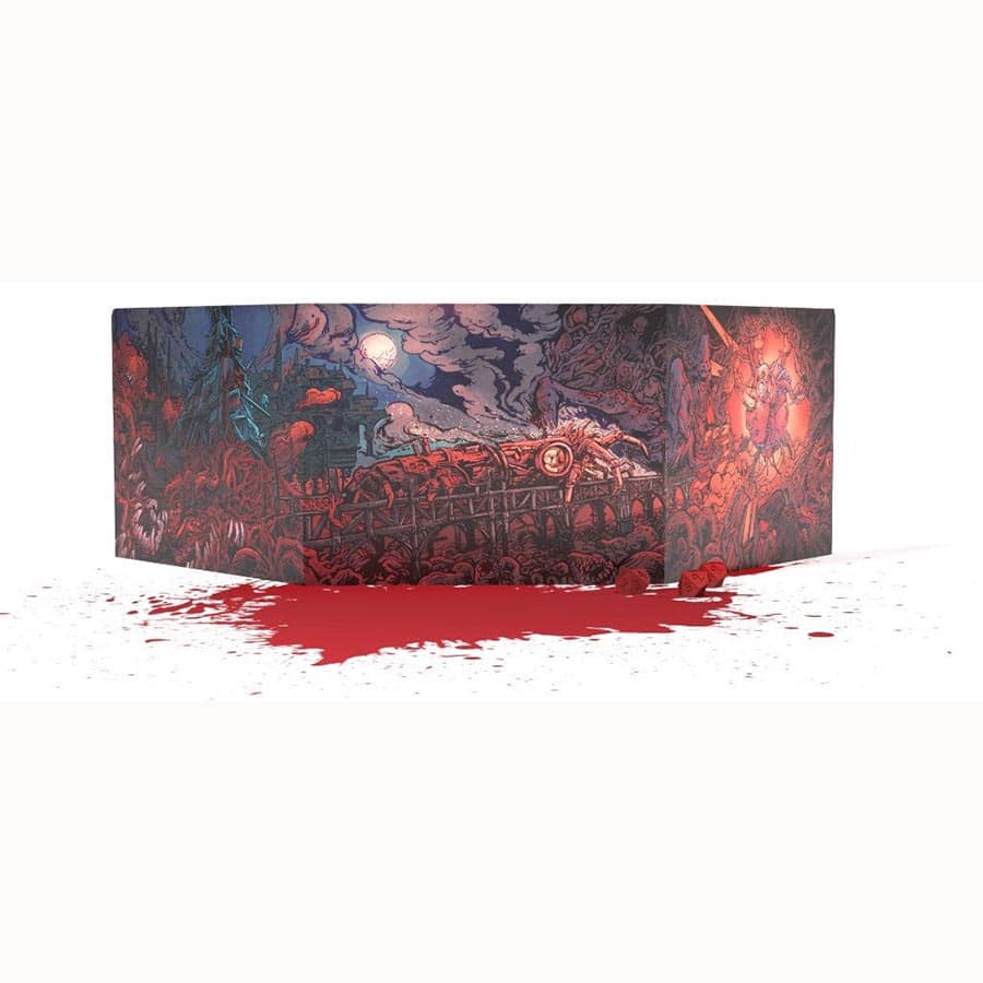 The Heart GM Screen is a gorgeous three-panel landscape screen. The player facing side depicts the sprawling vista of the Below, where the Delving Machine featured in Dagger in the Heart cuts through reality to reach the centre of the Heart. The GM facing side features a lusciously detailed wall of notes, trinkets, and evocative GMing tips scrawled by a Heart-obsessed Junk Mage. This acts as an immersive insight into the world, and the perfect blank canvas for a GM to build upon by using the content found within the 24 page booklet. This booklet is full of tables and references for the GM to choose and use as they like – everything from mechanical reminders to keep your game flowing, to flavourful tables that bring the world to life. GMs can use the booklet on its own, or cut out the tables they need the most and stick them to the back of the screen to make their perfect GM screen.
