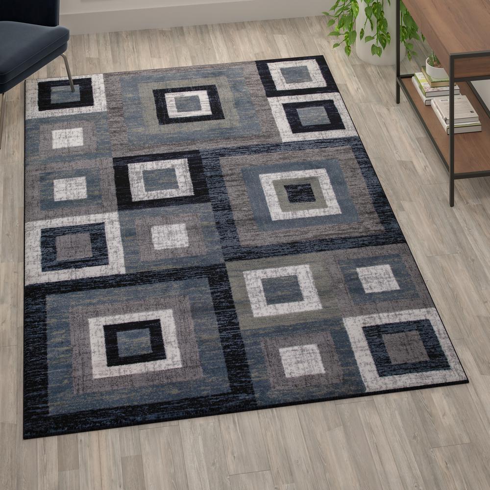 Geometric 6' x 9' Blue, Grey, and White Olefin Area Rug with Cotton Backing - Flash Furniture