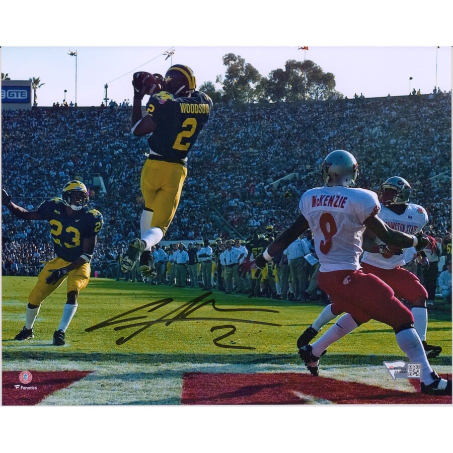 Charles Woodson Michigan Wolverines Autographed 8'' x 10'' Leaping Interception Photograph