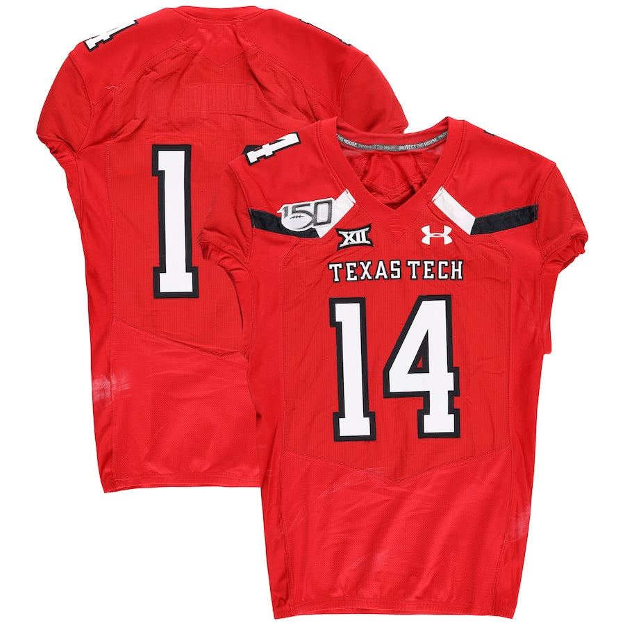 Texas Tech Red Raiders Team-Issued #14 Red Jersey with 150 Patch from the 2019 NCAA Football Season