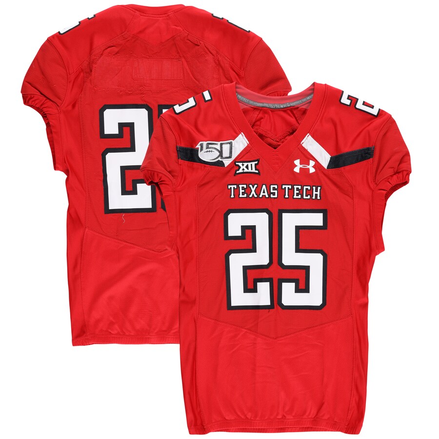 Texas Tech Red Raiders Team-Issued #25 Red Jersey with 150 Patch from the 2019 NCAA Football Season