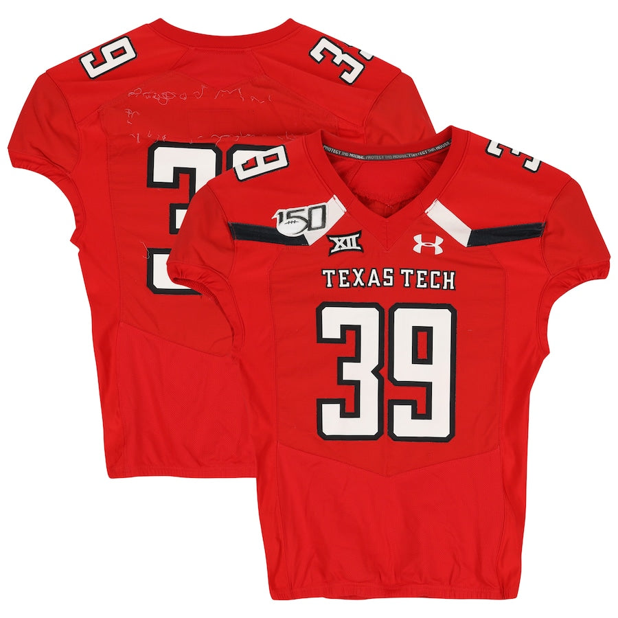 Texas Tech Red Raiders Team-Issued #39 Red Jersey with 150 Patch from the 2019 NCAA Football Season