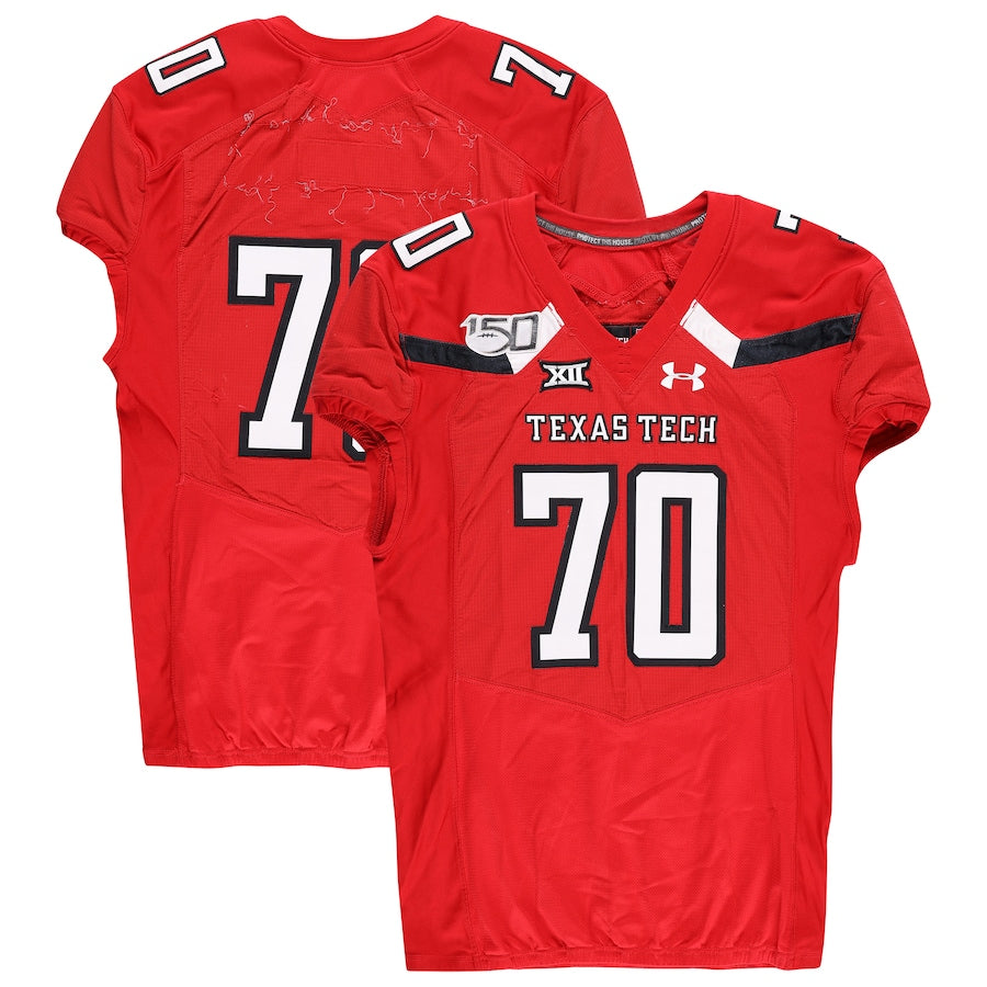 Texas Tech Red Raiders Team-Issued #70 Red Jersey with 150 Patch from the 2019 NCAA Football Season