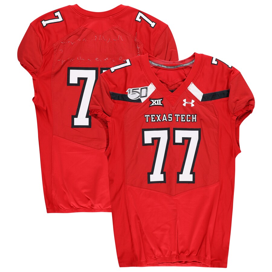 Texas Tech Red Raiders Team-Issued #77 Red Jersey with 150 Patch from the 2019 NCAA Football Season
