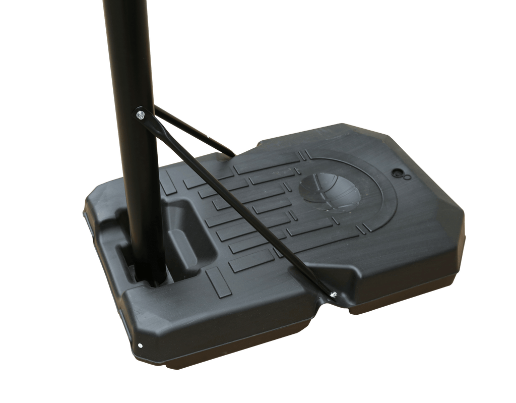 [Extra Large Stable Base]The large base ( Dimension: 35"(L)x 24"(W) x 6"(H)) equipped with 2 intakes for sand or water,making the basketball system more stable than others. What's more, with two transportation wheels, the whole system can be easily moved from indoor to outdoor.