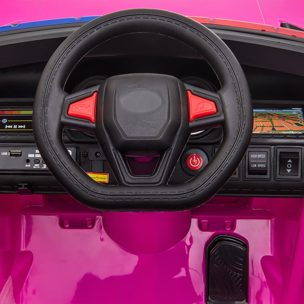 Yeah Depot - 12V Kids Ride On SUV Cop Car with Remote Control, Siren Sounds Alarming Lights, Music Story - Rose Red