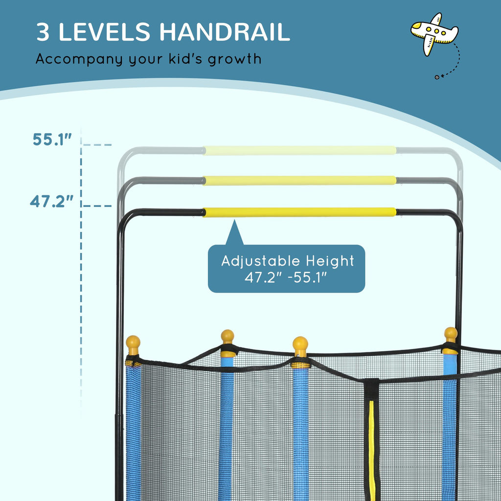 Yeah Depot - Qaba 4.6' Kids Trampoline with Basketball Hoop, Horizontal Bar, 55'' Indoor Trampoline with Net, Small Springfree Trampoline Gifts for Kids Toys, Ages 3-10, Blue