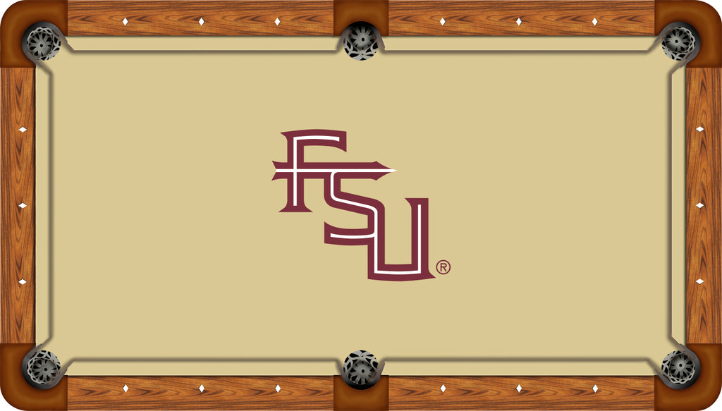 Bring your pool table to life by featuring your favorite college team logo printed right on tournament quality worsted billiard cloth with our LICENSED COLLEGIATE PROFESSIONAL GRADE BILLIARD CLOTH.Artscape by Milliken is a kaleidoscope of color and design, digitally-dyed right into the fabric, creating bright and colorful images that will last the life of your cloth. Milliken's unique and exclusive process ensures vibrant images that are color and water fast. Their designs are specifically engineered to hide normal wear and tear such as ball marks, burns, and bruises, meaning your cloth will look better longer than any competing brand of cloth.Each cut of Artscape is specially treated with Milliken's patented Spillguard protection, preventing stains on your table, including red wine! If liquid spills on the table, watch it bead up, then simply dab it up with a dry towel.These innovative manufacturing techniques do not affect the playability of the cloth, meaning you will have a professional-grade, tournament style pool table cloth that will last for years to come.Artscape is printed on Milliken SuperPro professional cuesports cloth, a worsted blend of 70% Merino wool and nylon. It has been used in professional tournaments across the globe, and is preferred by a number of professional billiards players for its consistency and durability. Milliken is a worldwide leader in textile and technology research and development, headquartered in Spartanburg, SC. Their woolen specialty mill, where Artscape and SuperPro billiard cloths are produced, is located in the UK, and has been producing wool products since the 1600's.