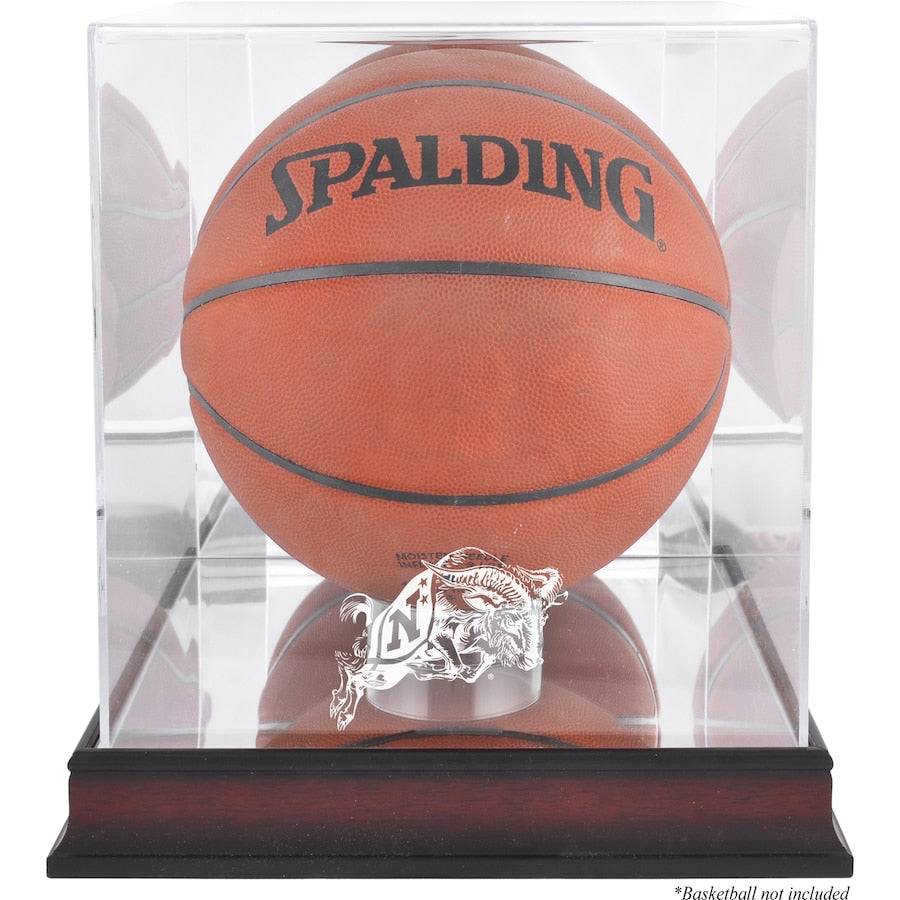 This Navy Midshipmen mahogany logo basketball display case features an antique mahogany finished base and a 1/8''-thick clear acrylic removable lid with engraved team logo. It also includes a mirrored bottom and back. The case is perfect for a collectible basketball. It is officially licensed by the LRG and the United States Naval Academy. Measures 12 1/4'' x 12 1/4'' x 12 1/2''. Memorabilia not included.