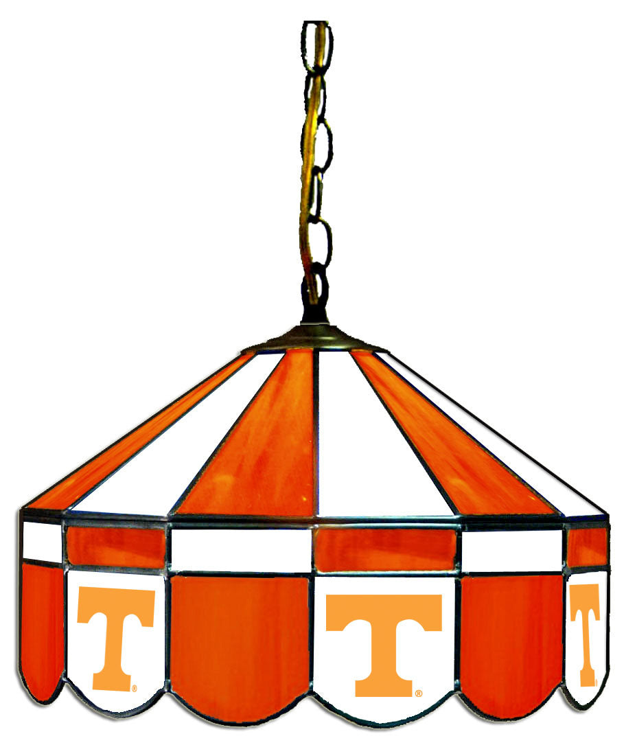Decorate your gameroom with brilliant color, high quality stained glass lamps showcasing your favorite team.These collegiate Tiffany Style Stained Glass lamps, manufactured by All American Lamps, are created with the school's logos screen printed onto the glass. Their products use the same opalescent art glass that was used by Tiffany years ago. Each piece of glass is individually cut, leaded, and soldered together by hand with the same care and traditional workmanship found in those early works of art.We offer a large selection of different styles from small pool table lamps to full sized billiard lights as well as hanging lamps and table lamps big and small. We have several different logos to chose from. Something for every ones taste.The finished product is a beautiful, high quality lamp sure to delight any college fan.These stained glass lamps are available up to15 different styles to acommodate any decor or budget.