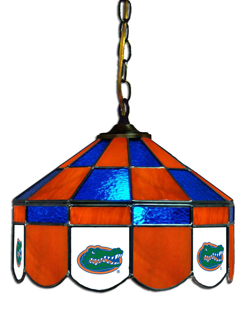 Decorate your gameroom with brilliant color, high quality stained glass lamps showcasing your favorite team.These collegiate Tiffany Style Stained Glass lamps, manufactured by All American Lamps, are created with the school's logos screen printed onto the glass. Their products use the same opalescent art glass that was used by Tiffany years ago. Each piece of glass is individually cut, leaded, and soldered together by hand with the same care and traditional workmanship found in those early works of art.We offer a large selection of different styles from small pool table lamps to full sized billiard lights as well as hanging lamps and table lamps big and small. We have several different logos to chose from. Something for every ones taste.The finished product is a beautiful, high quality lamp sure to delight any college fan.These stained glass lamps are available up to15 different styles to acommodate any decor or budget.