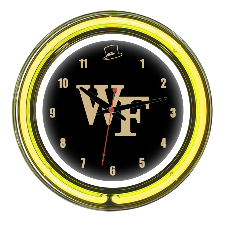 WAKE FOREST NEON WALL CLOCK - 14'' BLACK FACE / YELLOW NEON - WFUNWC200-14