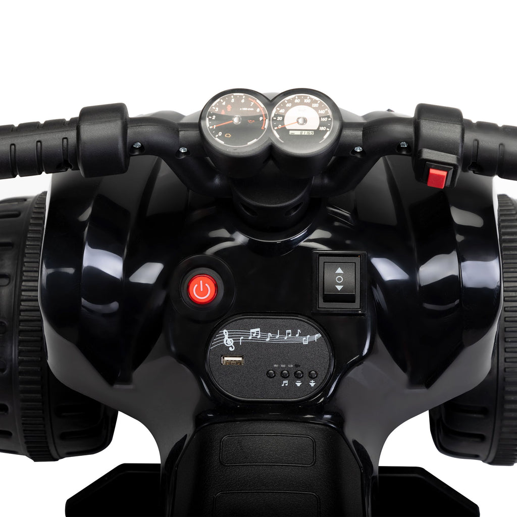 FX070 - Kids Ride-on ATV, 6V Battery Powered Electric Quad Car with Music, LED Lights and Spray Device, 4 Wheeled Ride-on Toy for Toddlers Age 3-5, Black