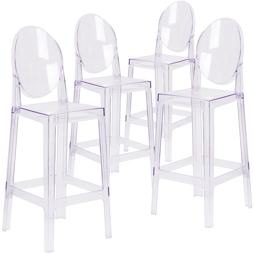 4 Pk. Ghost Barstool in Transparent Crystal with Oval Back - Flash Furniture