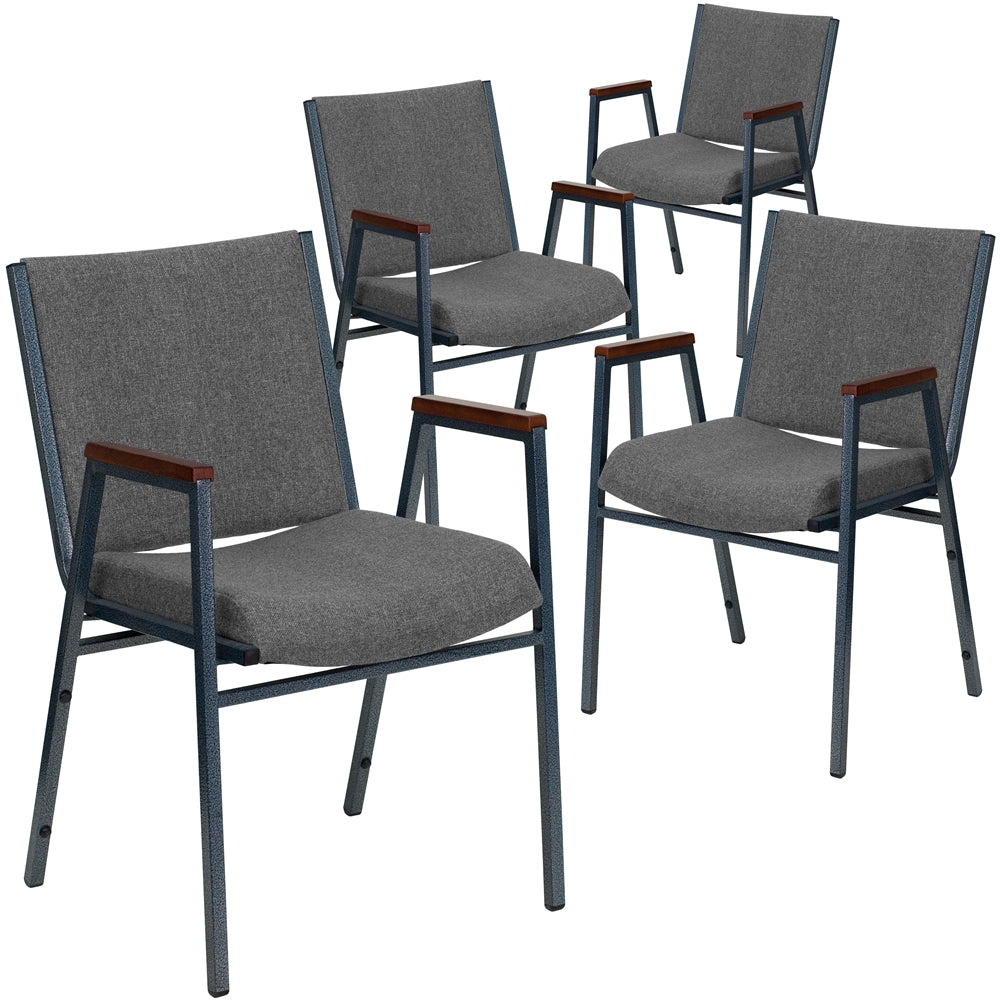 4 Pk. HERCULES Series Heavy Duty, 3'' Thickly Padded, Gray Upholstered Stack Chair with Arms - Flash Furniture