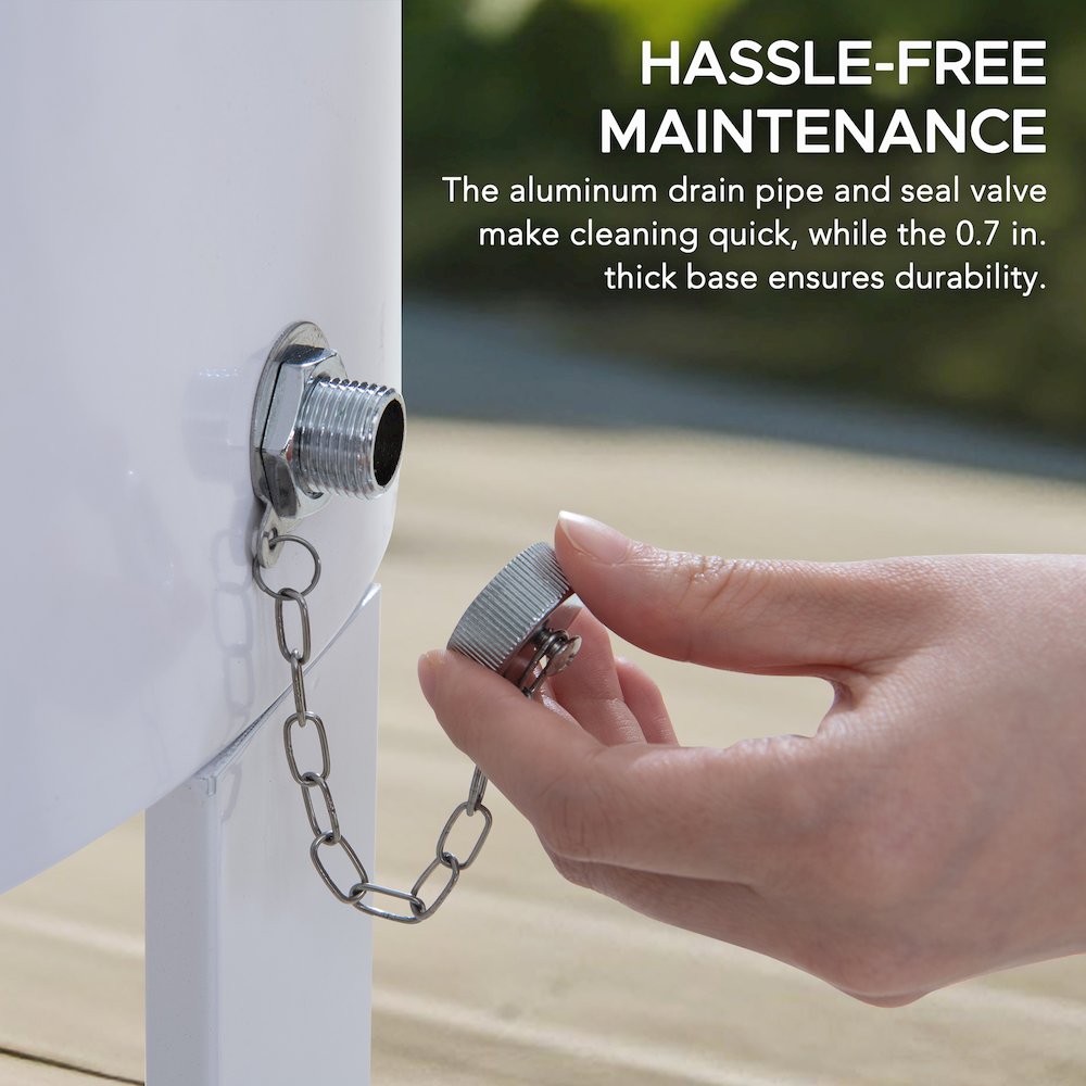 With 24 years of experience, Sunjoy has established itself as a leader in the gazebo industry. We are proud to have sold over 10 million gazebos across North America, a testament to our dedication to innovation, quality, and customer satisfaction. Join the millions who have made Sunjoy a part of their outdoor lifestyle, and experience the quality and craftsmanship that define our brand. Keep your drinks cool in style with this patio cooler cart by Sunjoy, the world’s leading ready-to-assemble outdoor structure maker. This is the perfect way to store and serve beverages at your next gathering. This round rolling cooler is made of powder-coated steel. Two handles are included to make the cooler easy to move. The lower shelf is a great place for extra storage and the built-in bottle opener ensures you will always be able to open your favorite beverage. Use the wheels locking feature to ensure stability once the cooler cart is positioned where desired. The cooler comes with a stainless-steel drain plug to make clean-up a breeze when the party is over.