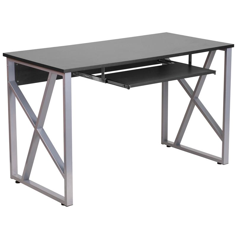 Black Computer Desk with Pull-Out Keyboard Tray and Cross-Brace Frame - Flash Furniture