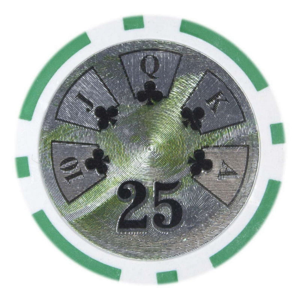 14 Grams in weight with eye-catching laser graphics, these 14 Gram Ben Franklin $25 poker chips are a great addition to any poker game.
