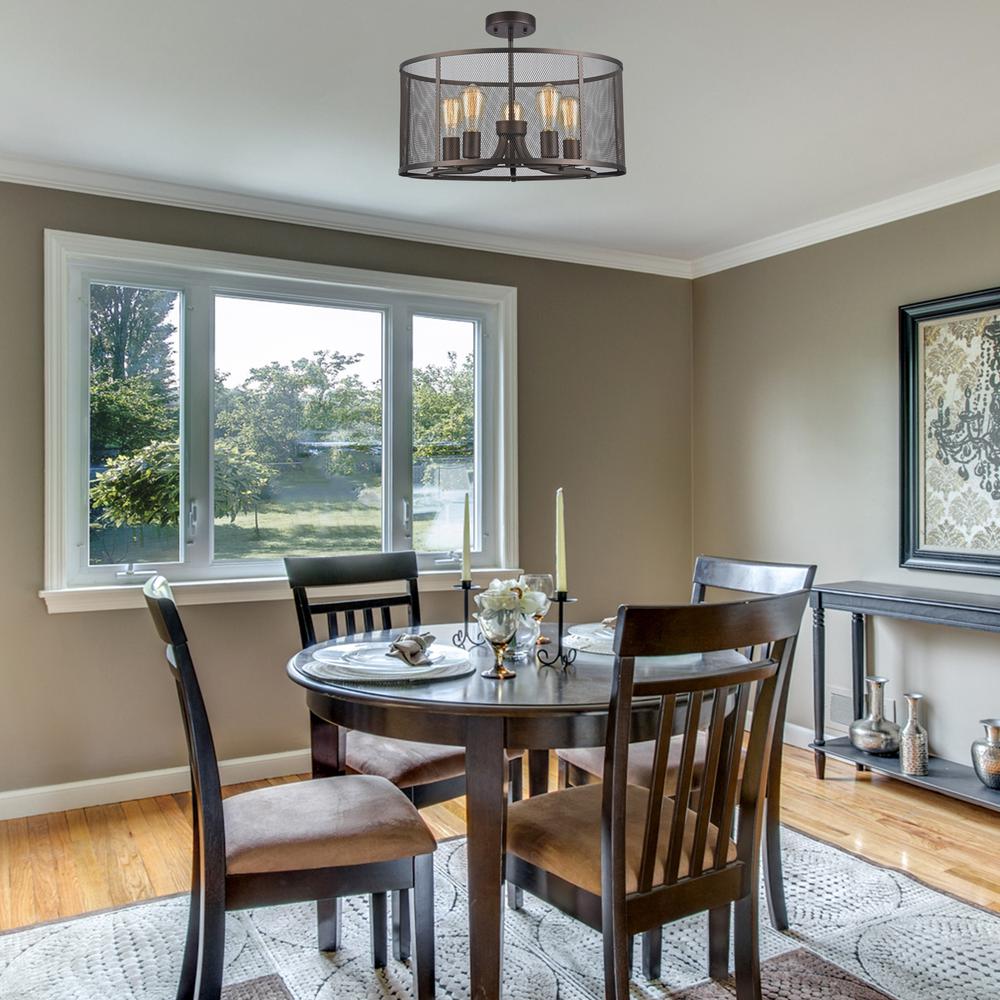 This 5-light pendant features an oil rubbed bronze finish that will complement many industrial, urban, loft, and transitional decors. The mesh frame surrounding the cluster of lights adds interest and helps create a unique look to any space. It takes five 100W E26 bulbs (not included), is compatible with fluorescent, incandescent, and LED bulbs, and would a perfect fit in the livingroom, diningroom, hallway, den, foyer and even the bedroom! This fixture is dry listed and UL listed, and not recommended for damp/wet locations. Recommended for residential and commercial use.