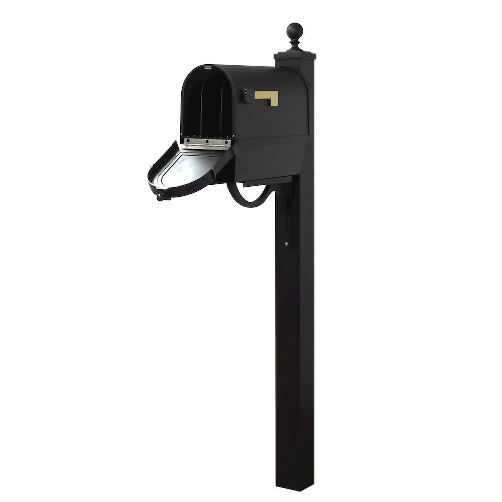 The Berkshire Curbside Mailbox presents an impressive face. The one piece cast aluminum door features deeply cut details with a rich, leather grain textured panel. The stainless steel spring hinge and magnetic catch will keep the door secure and the rust proof cast aluminum body construction creates a weather resistant mailbox. Newspaper Tube is included. Also includes up to five 2 inch tall brass self adhesive address numbers. The Springfield Series Mailbox Post features a 4'' x 4'' x 78'' smooth square post. Made entirely of aluminum with stainless steel components to eliminate rusting. Direct burial installation is required.