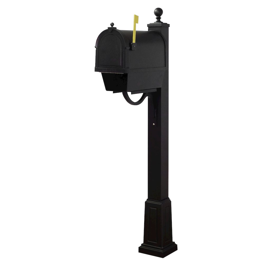 The Berkshire Curbside Mailbox presents an impressive face. The one piece cast aluminum door features deeply cut details with a rich, leather grain textured panel. The stainless steel spring hinge and magnetic catch will keep the door secure and the rust proof cast aluminum body construction creates a weather resistant mailbox. Newspaper tube is included.The Springfield Series Mailbox Post features a 4'' x 4'' x 78'' smooth square post. Also includes a 14'' tall x 7'' x 7'' decorative slip over cast aluminum base. Made entirely of aluminum with stainless steel components to eliminate rusting. Direct burial installation is required.