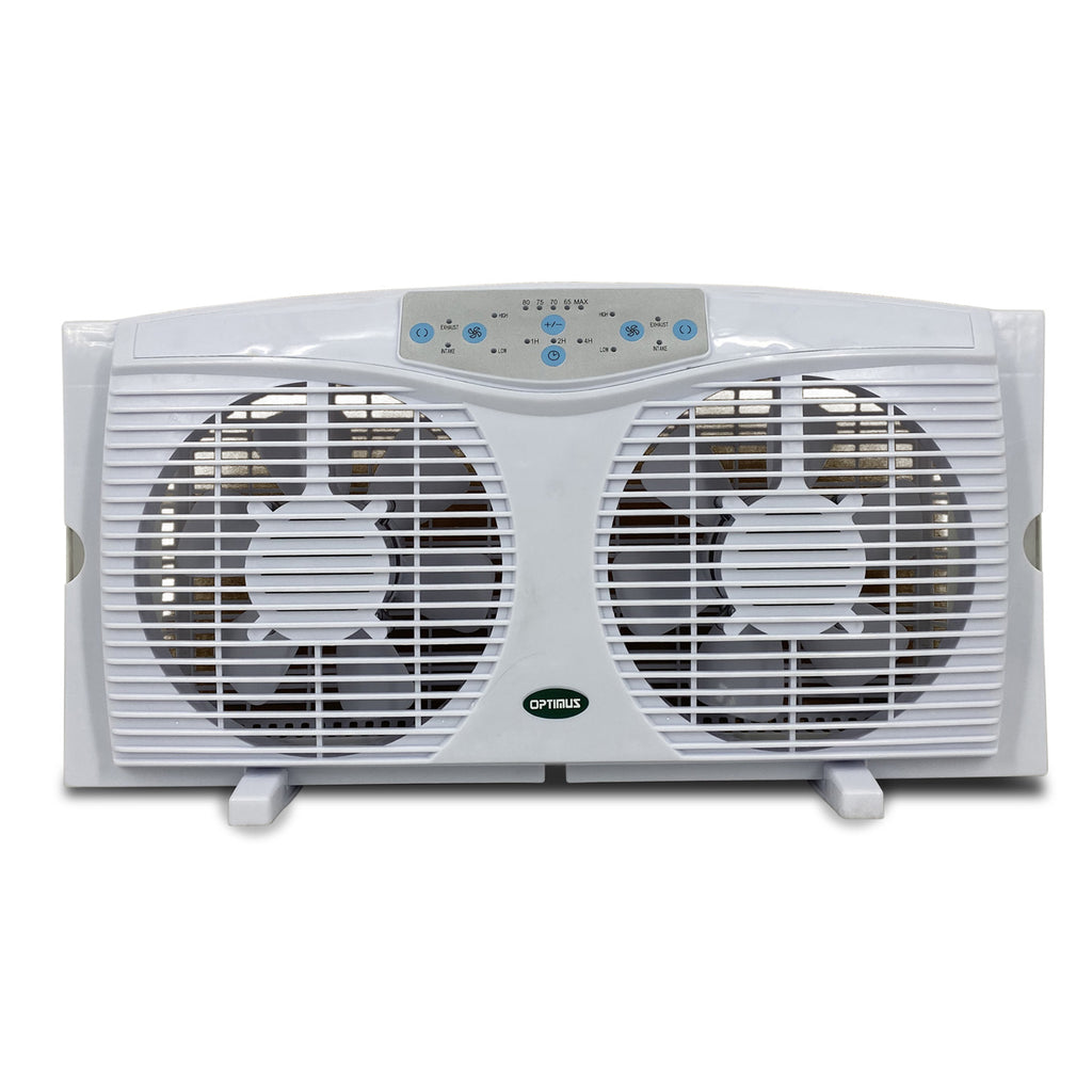 Optimus 8 in. Electric Reversible Twin Window Fan with Thermostat & LED