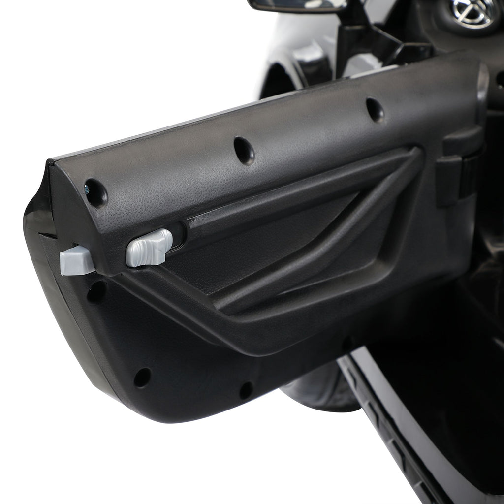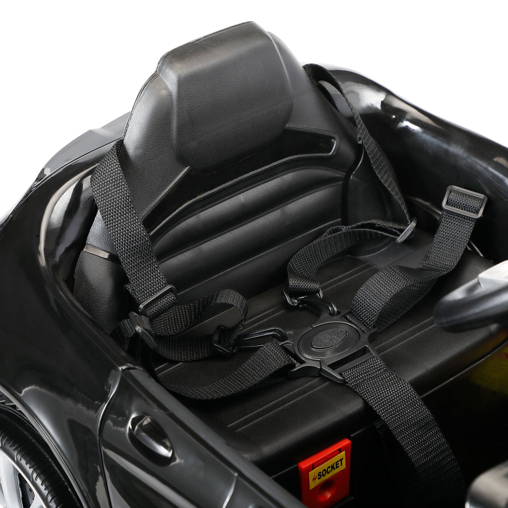 Features:[2 Modes for Driving]: Children can independently drive the electric car forward or backward by the steering wheel, pedal accelerator and the dashboard. Parents can join the fun and control the speed and direction to ensure the maximum safety via 2.4G remote controller.[Much Fun with High Performance]:This ride-on car is packed with built-in music/songs, stories, education materials, USB port, AUX, battery indicator, and volume adjustment. Children will gain more fun and enjoyment while playing and driving.[Safety Assurance]: Spacious seat with 5-point belt offerssafetyand comfort.Aspecial emergency stop buttonprevents children from being frightened by sudden acceleration or brakingwhile protecting them from potential danger. [Sturdy Structure for Any Terrain]: A reinforced plastic car body combines with 4 wear-resistant wheels that are designed with knobby treads, ensuring the kids car rides smoothly and safely on various terrains for long-term enjoyment. [Perfect Gift for Kids]: Scientifically designed kids ride on car with a streamlined realistic look, an upgraded battery, brilliant LED head/rear lights, working doors, and a simulation dashboardis a wonderful present for your children's birthday or Christmas and accompany their growth.Specifications:Color: BlackNet Weight: 22.16 lbsMaterial: PP+Electronic ComponentsOverall Dimensions: 39.4"Lx22.8"Wx18.1"HMaximum Load Capacity: 66lbsSpeed: 1.86 mph - 4.3mphBattery: 6V4.5AH x1 (Rechargeable)Charger:6V 500MA(Output); 120VAV 60Hz(Input)Motor:6V390x1Charging Time:8-12 hours(Before first time use, charge the battery for at least 4-6 hours)Suitable Ages: 3-8 years old (or younger with full parental supervision)