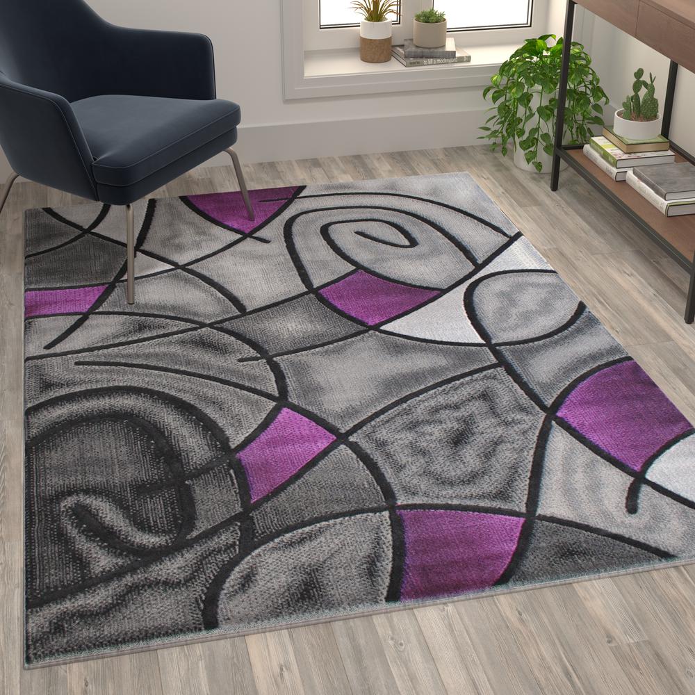 5' x 7' Purple Abstract Area Rug - Olefin Rug - Flash Furniture