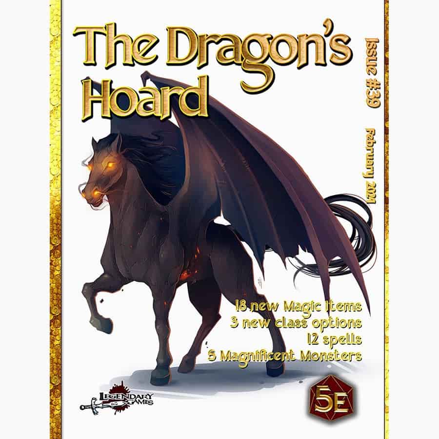 The Dragon’s Hoard is a monthly anthology of magic items, spells, monsters, and more for your 5th Edition campaign! Each issue of The Dragon’s Hoard takes every new magic item, spell, monster, or other new rules content from our ongoing Legendary Loot Patreon and presents it for you, with dozens of new elements beautifully illustrated and ready to unleash on your players! In this month's features you'll find:
