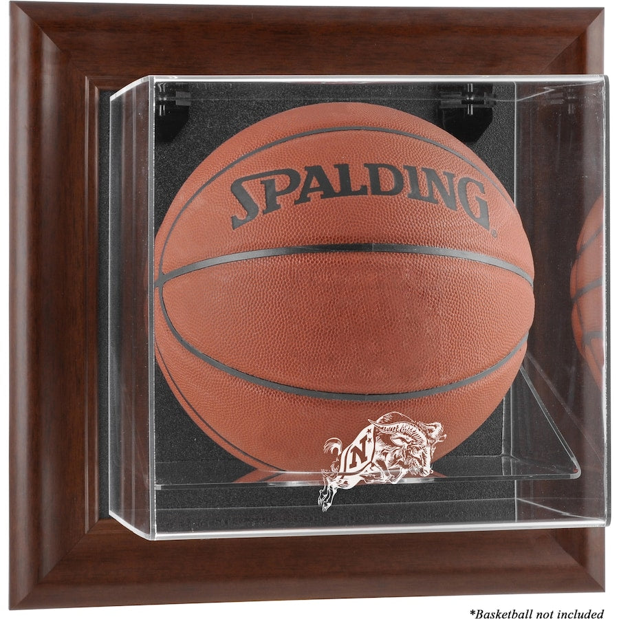 This wall-mountable basketball display case is made of 1/8''-thick acrylic with a brown wood frame. It features a clear acrylic removable lid with engraved team logo. The case is perfect for a collectible basketball. It is officially licensed by the NCAA. Inner measurements: 9 1/2'' x 10'' x 9 1/2''. Outer measurements: 15 1/2'' x 11 1/4'' x 15 1/2''. Memorabilia sold separately.