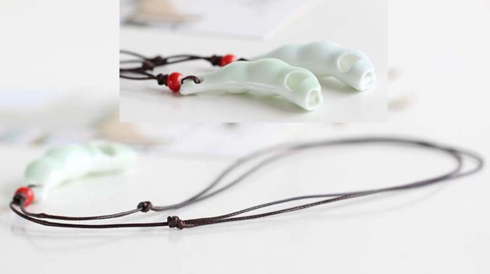 PANDA SUPERSTORE - 6 Packs Ceramic Whistles Necklace Creative Pea pod Shape Decorated Handmade Crafts
