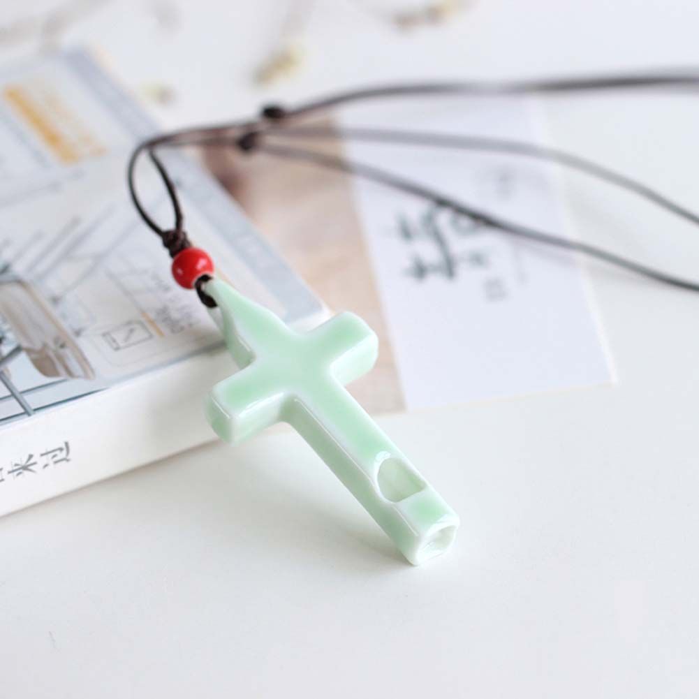 PANDA SUPERSTORE - Ceramic Whistles Necklace Handmade Cross Shape Decorated Sweater Ornaments; 6 Packs