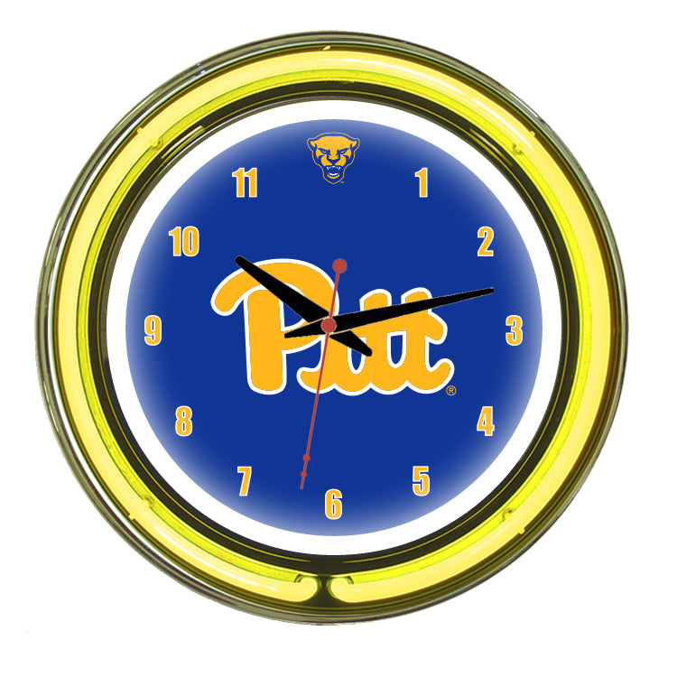 PITTSBURGH NEON WALL CLOCK - 14'' BLUE FACE / YELLOW NEON - PITNWC300-14