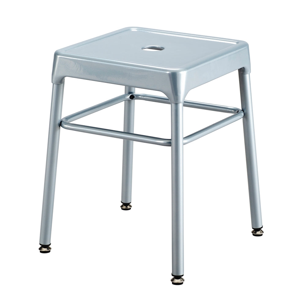 The Safco® Steel Guest Stool is a sturdy, all steel stool that is great for use in a variety of spaces. The new gues-height stool is perfectly suited for use in breakrooms, open floor plans, personal workspaces, lobbies and more. The easy-to-clean powder coat finish is durable and chip-resistant for a long-lasting seating option. These stools include choice of nylon leg caps or leveling glides to protect floors from scratches or scuffs. The hole in the top of the seat allows the chair to be easily gribbed and carried to allow for portability between spaces. Available to ship within 48 hours for convenient and fast delivery.