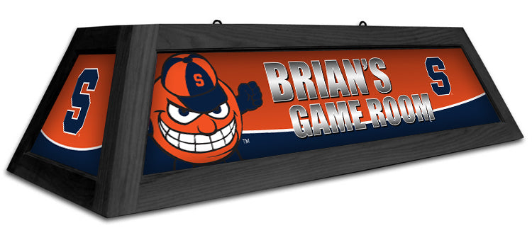 Add that special touch to your gameroom with our CUSTOM SPIRIT GAME TABLE LAMP! The traditional look of the hardwood frame will compliment your billiard table. While the bright backlit graphics will help to define the atmosphere of your game room. The frame is handcrafted from solid hardwood using tongue and groove joinery. The side and end panels boast vibrant backlit graphics printed on shatter resistant Duratrans acrylic. You can customize the lamp to replace the standard verbiage to personalize it. Some restrictions apply. The 42'' GAME TABLE LAMP provides up to 400 watts of illumination using compact fluorescent bulbs, or 260 watts using incandescent bulbs. Ceiling canopies and chain are included allowing for easy installation.