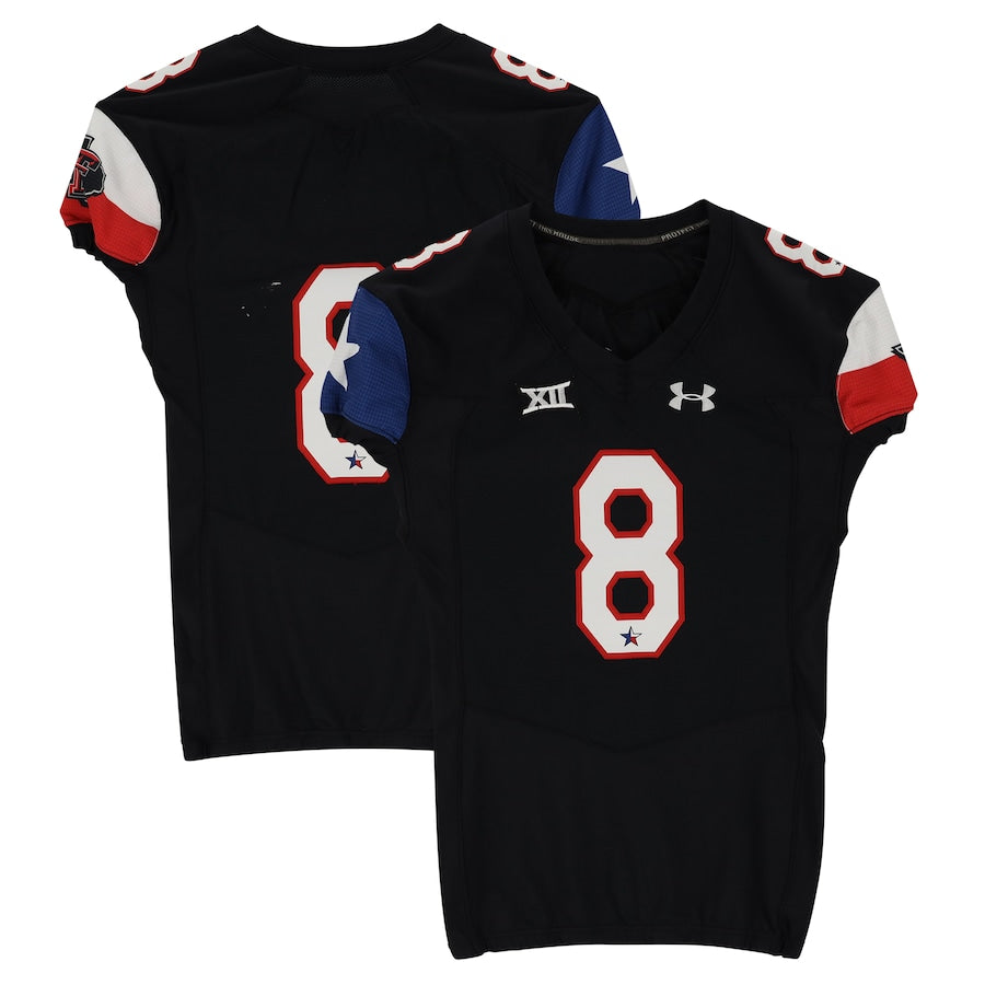 Texas Tech Red Raiders Team-Issued #8 Black State Flag Jersey from the 2014 NCAA Football Season