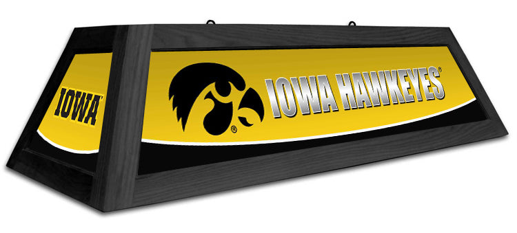 Add that special touch to your gameroom with our LICENSED COLLEGIATE SPIRIT GAME TABLE LAMP! The traditional look of the hardwood frame will compliment your billiard table. While the bright backlit graphics will help to define the atmosphere of your game room. The frame is handcrafted from solid hardwood using tongue and groove joinery. The side and end panels boast vibrant backlit graphics printed on shatter resistant Duratrans acrylic. The 42'' GAME TABLE LAMP provides up to 400 watts of illumination using compact fluorescent bulbs, or 260 watts using incandescent bulbs. Ceiling canopies and chain are included allowing for easy installation.