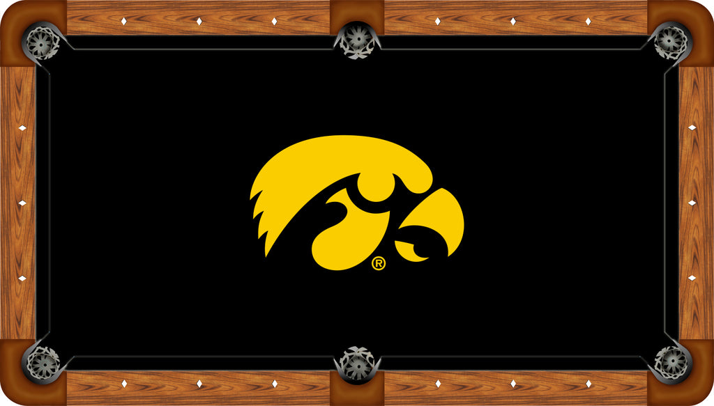 Bring your pool table to life by featuring your favorite college team with our LICENSED COLLEGIATE RECREATIONAL GRADE BILLIARD CLOTH The Recreational Billiard Cloths are manufactured using state-of-the-art, dye-sublimation technology which produces clear, eye-catching graphics/logos that are permanently imprinted and heat sealed on a specialty polyester cloth. This polyester cloth has an anti-friction coating to create consistent Englishand a 40 gram laminated backing to control ball speed. The cloth’s stain resistant coating helps protect from unwanted stains. The logos and colors are printed at the same time to create an even and smooth playing surface. This cloth is ideal for those consumers wanting to spice up their gameroom at a much more affordable price.