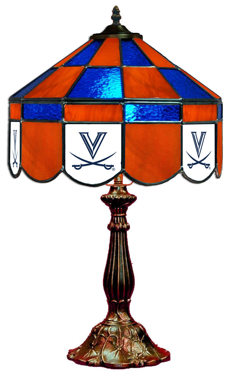 Decorate your gameroom with brilliant color, high quality stained glass lamps showcasing your favorite team.These collegiate Tiffany Style Stained Glass lamps, manufactured by All American Lamps, are created with the school's logos screen printed onto the glass. Their products use the same opalescent art glass that was used by Tiffany years ago. Each piece of glass is individually cut, leaded, and soldered together by hand with the same care and traditional workmanship found in those early works of art.We offer a large selection of different styles from small pool table lamps to full sized billiard lights as well as hanging lamps and table lamps big and small. We have several different logos to chose from. Something for every ones taste.The finished product is a beautiful, high quality lamp sure to delight any college fan.These stained glass lamps are available up to15 different styles to acommodate any decor or budget.