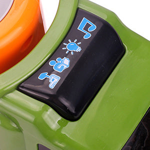 FLASHING LIGHTS & SOUND OF CAR STARTING: Press the button on the top of the cab; you can hear the car starting sound and see the bright flashing lights; which is very attractive to the children. "