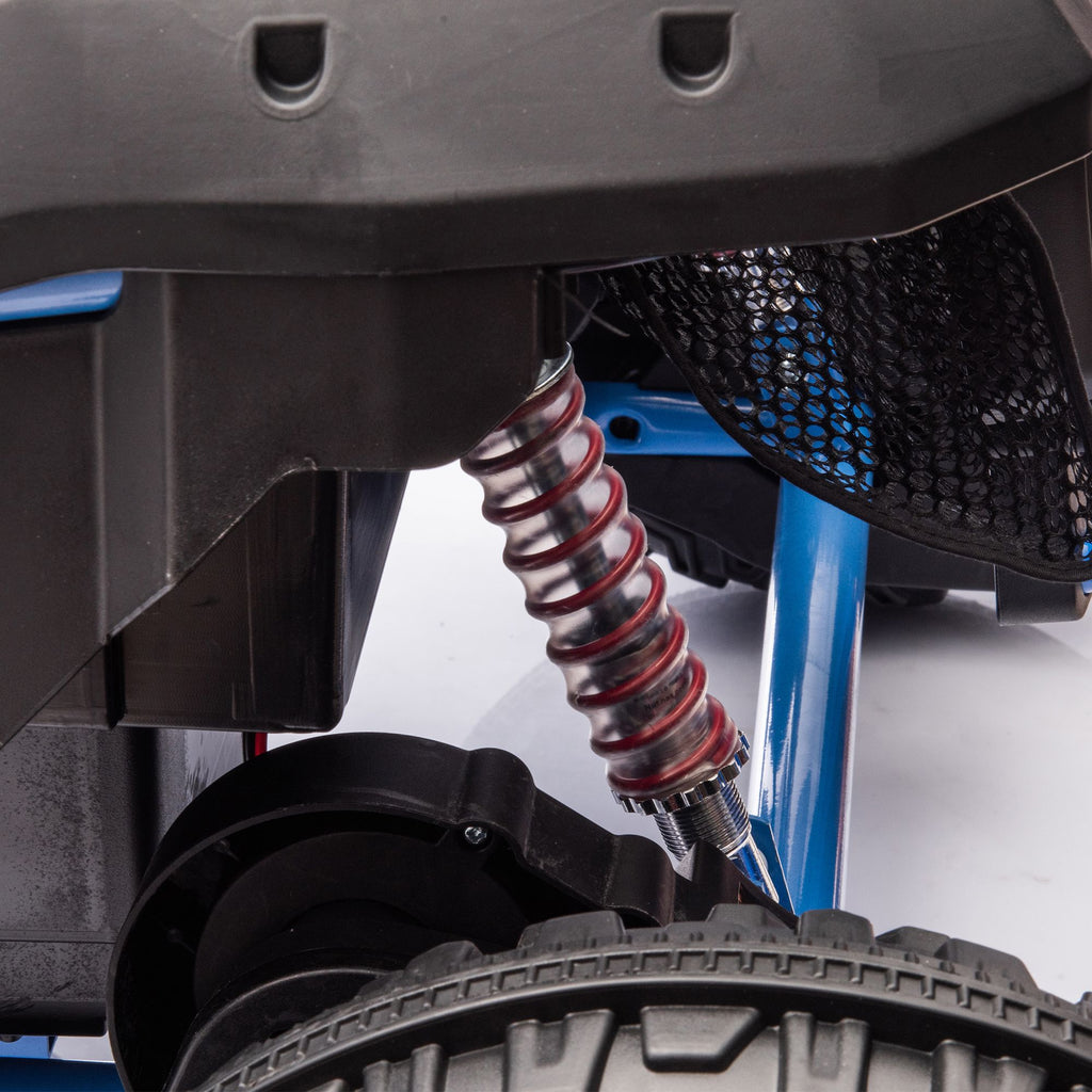 The four-wheel damping system is a standout feature of this electric car. It acts as a silent guardian, effectively filtering out bumps and vibrations on the road. Whether on a rough path or uneven terrain, children can experience a smooth driving sensation as if walking on flat ground, significantly enhancing the riding comfort.
