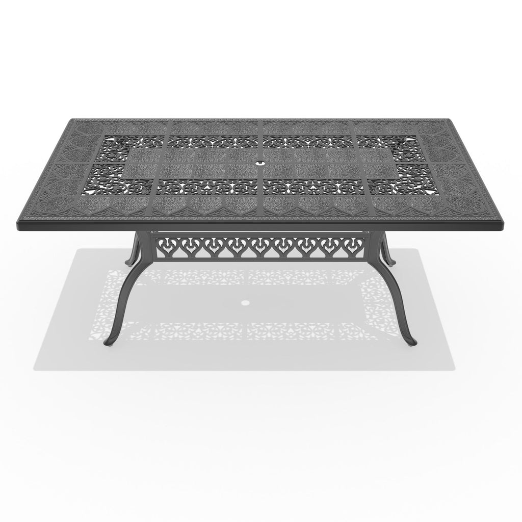 Yeah Depot - L68.90*W35.43-inch Cast Aluminum Patio Dining Table with Black Frame and Umbrella Hole